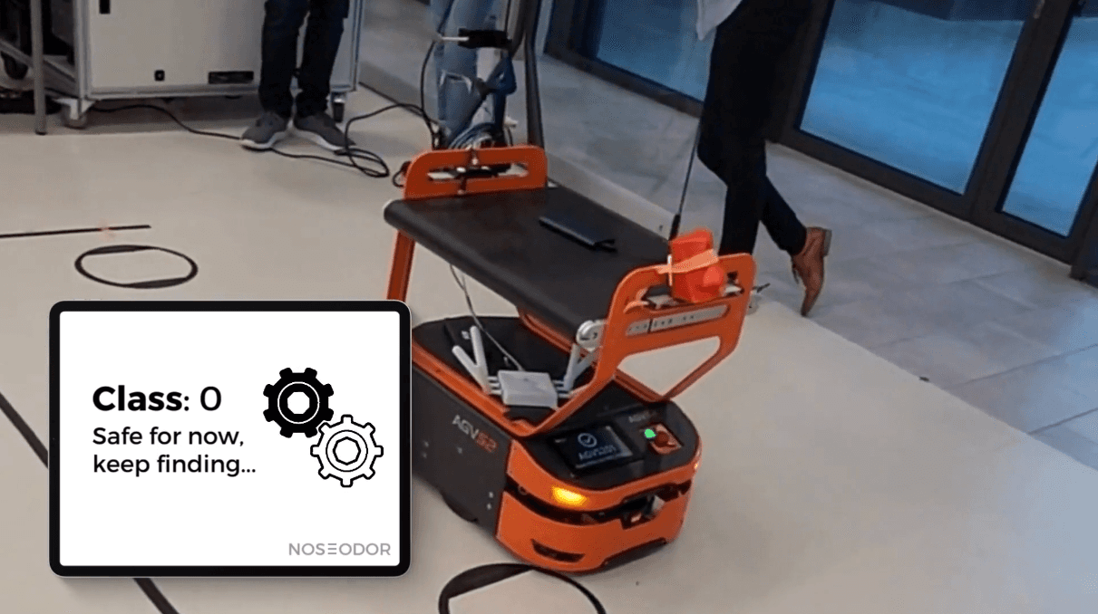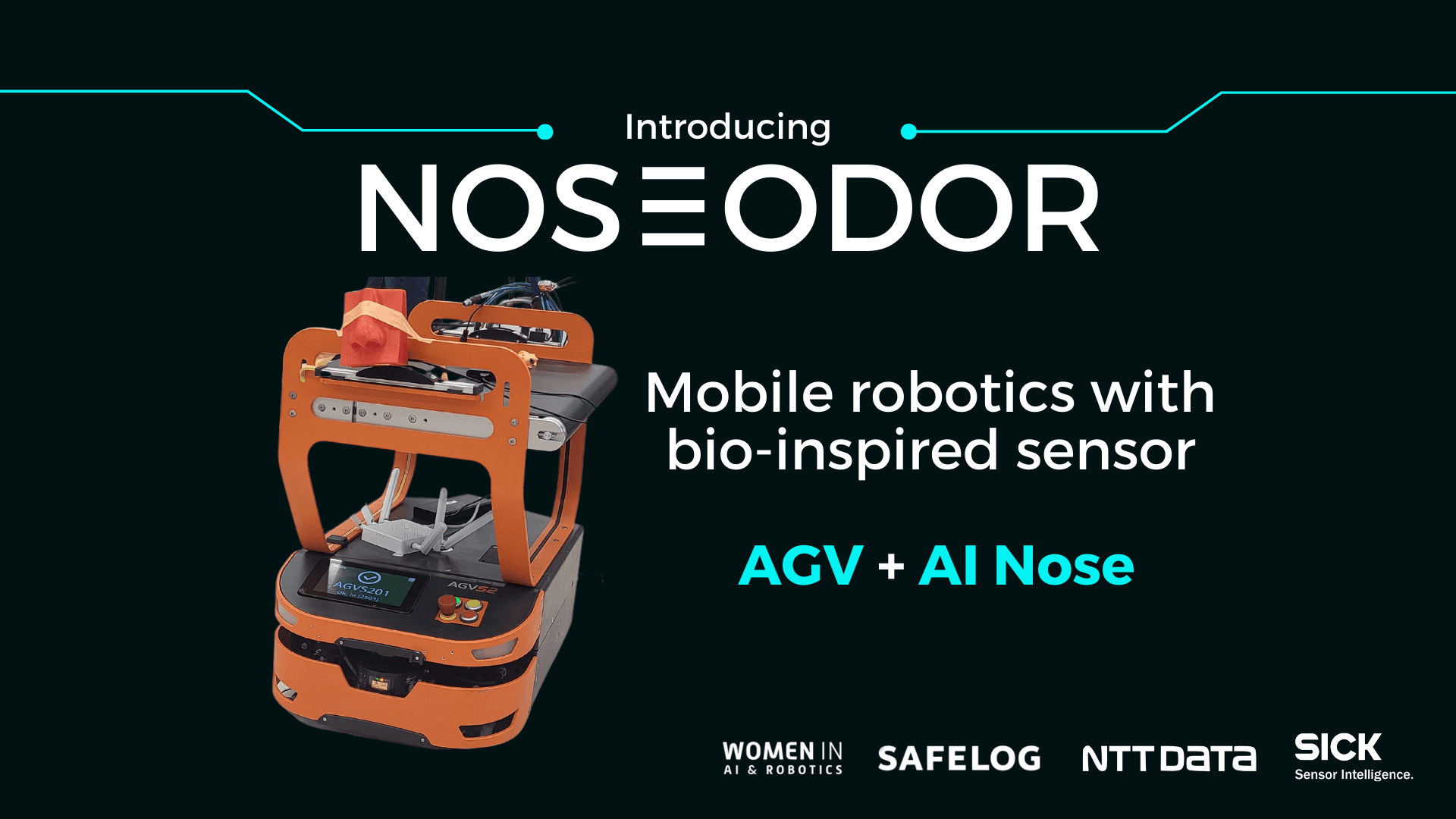 An Automated Guided Vehicle (AGV) equipped with a bio-inspired sensor "AI Nose" pretrained on various scents that detects the source of an odor and automatically navigates to it. Developed as part of the SICK Solution Hackathon by utilizing SAFELOG and NTT DATA's technologies.